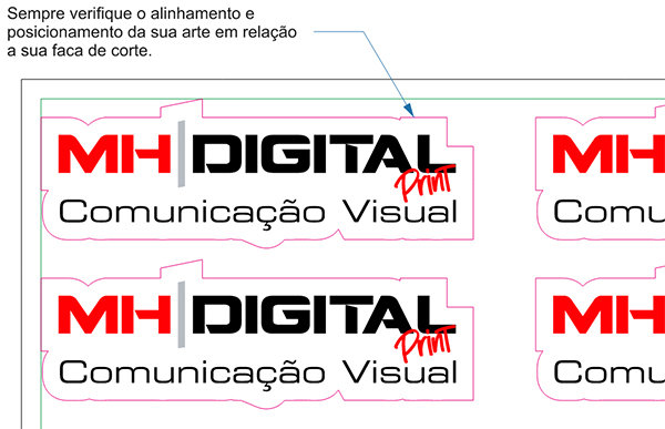 Arquivos com recorte, recomendamos enviar a faca sempre em PDF (VETOR) em página separada com a linha em magenta.