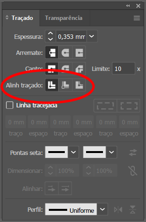 Nas opções de traçado, sempre mantenha o alinhamento do traçado central, caso contrário poderá ocorrer o corte duplicado do contorno, causando na maioria das vezes a perda do material impresso, perda essa não coberta pela nossa garantia.