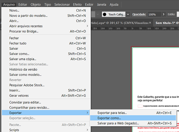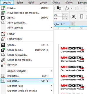 Selecione a opção Exportar no menu Arquivo: