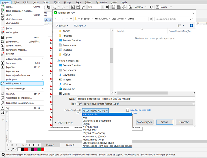 Para fechar o arquivo para impressão com Corte e Contorno, siga os passos abaixo: