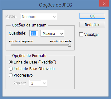 JPG – Utilizar Qualidade 12 e linha de base padrão