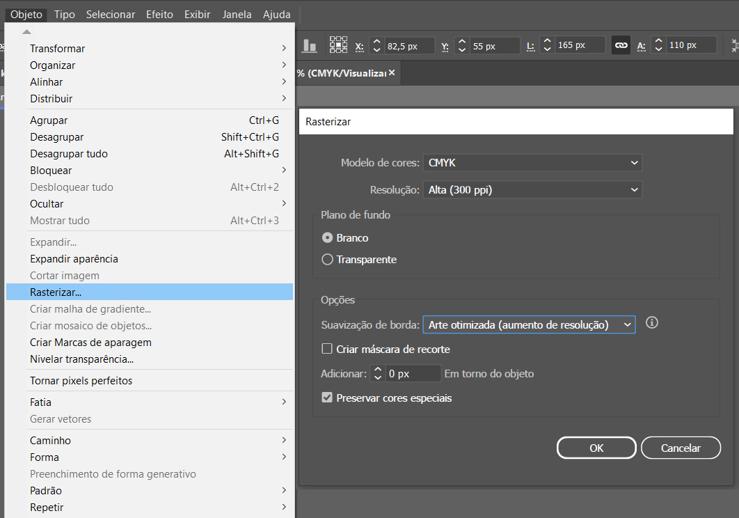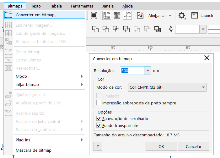 1º - Selecione todo o conteúdo da primeira página (Corel Draw) ou Prancheta (Ilustrator) em seu documento e converta tudo para imagem com 300dpi e em CMYK.