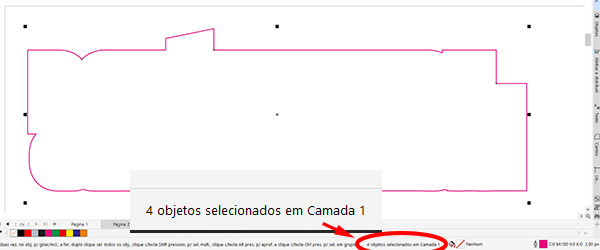 No Corel ao se selecionar a faca, é mostrado quantos elementos compões o objeto ou grupo, caso o número de objetos seja maior que 1, a faca tem que ser revisada e unir os pontos separados até que o total da faca seja apenas 1 objeto.